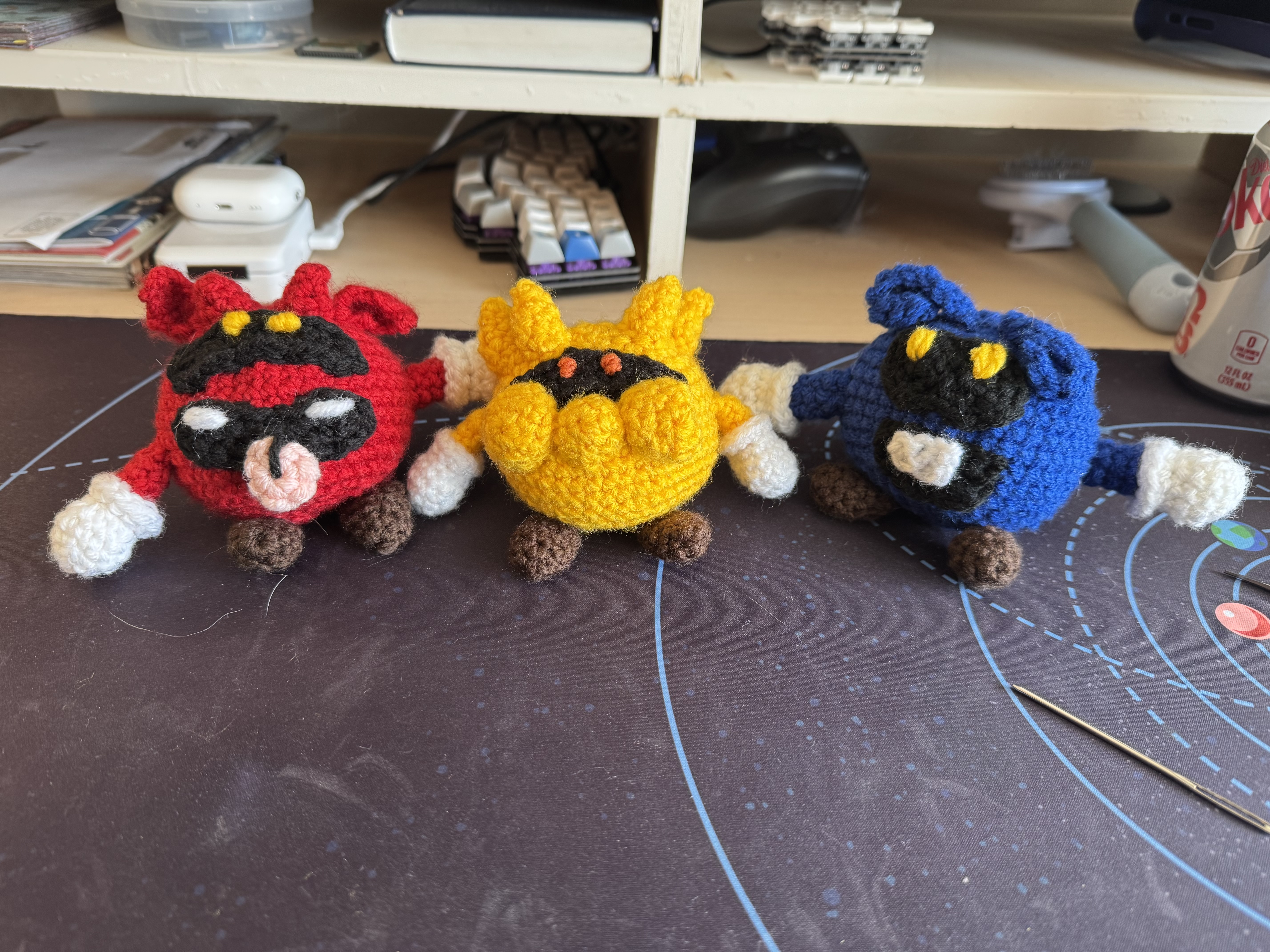 This is mostly just my bias, and because I don't really have felt at home, but I like avoiding felt in my projects. This is how I crocheted alternitives for the faces.